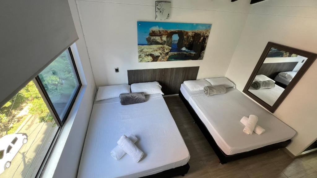 Habitación confortable con cama doble o dos sencillas, baño privado, TV satelital, aire acondicionado y WiFi. Perfecta para parejas o viajeros de negocios.